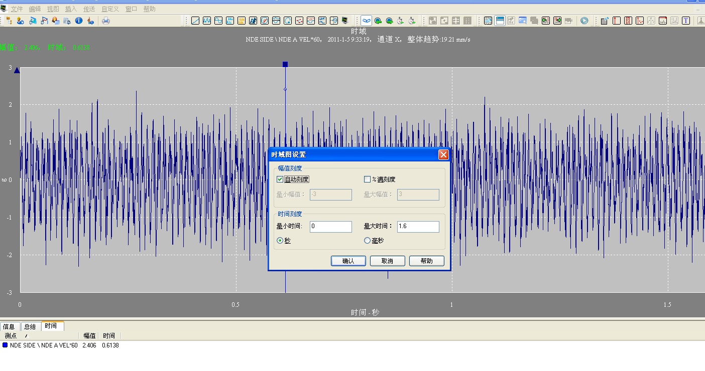 頻率:軸承各固有頻率; 圖像:設(shè)備照片及其上安裝的傳感器; 頻段:設(shè)置各頻段速度幅值的報警值; 包絡(luò):設(shè)置各頻段加速度包絡(luò)幅值的報警值; 消息:歷史報警記錄; 注記:設(shè)備病歷卡; ● 數(shù)據(jù)算法模塊具有以下功能: 1)對原始數(shù)據(jù)進行FFT變換; 2)計算加速度包絡(luò)等; ● 圖形分析模塊具有以下功能: 系統(tǒng)能展示以下四種圖形: 1)時域圖:圖形縱坐標(biāo)自動按數(shù)據(jù)峰值調(diào)整,使圖形顯示在坐標(biāo)系中間部位。圖形要能放大、縮小,可以選擇查看某個數(shù)據(jù)包,圖形能疊加單一光標(biāo)、周期光標(biāo)等分析工具,光標(biāo)移動到那里,信息窗顯示該點相應(yīng)數(shù)據(jù);